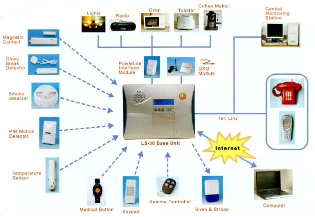 IP-based design: All functions of the base unit can be remotely operated though the Internet. Also alarm report through the Internet.